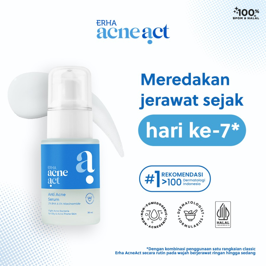 digunakan pagi dan malam hari setelah menggunakan produk toner ERHA ACNEACT.